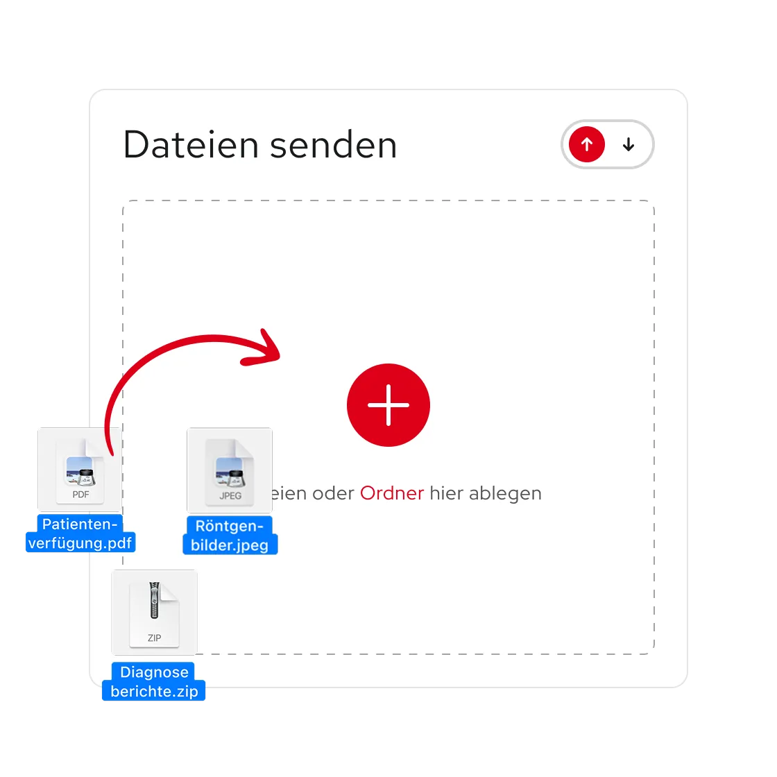 Patienten können Ihnen medizinische Dokumente sicher übermitteln - ganz ohne Konto oder Registrierung. Natürlich Ende-zu-Ende verschlüsselt.