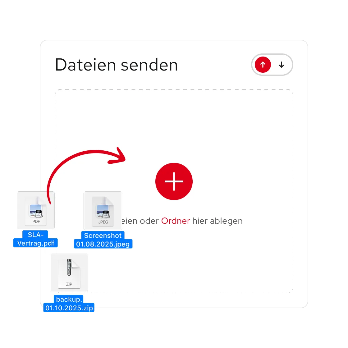 Empfangen Sie Dateien von Usern ohne Account aber trotzdem Ende-zu-Ende-verschlüsselt. Ideal für Support-Tickets, Bug-Reports oder Remote-Diagnose.